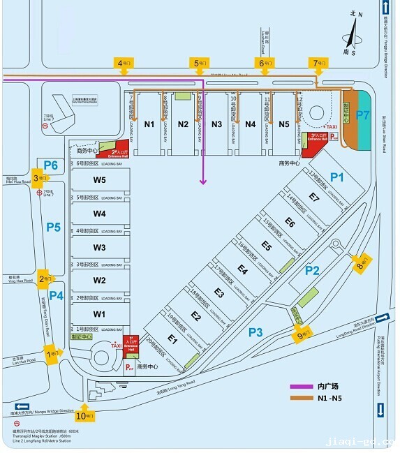 2, 货车进新国际博览中心,必须走花木路进上海新国际博览中心7号门,进(P7)停车场,再经(P7)停车场进N馆的各自卸货区。(见后面图)